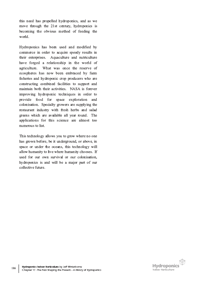 Chapter 17 - The Past Shaping the Present - A History of Hydroponics:Chapter dives into the complete history of hydroponics from the ancient world to the current state of play. In-depth and well researched, the entire evolution of hydroponics is documented and commented on. It is broken down into three sections; the past, the present, and the future. This chapter represents an historical education and gives a prediction on the role hydroponics will have to play in the future of humanity. |